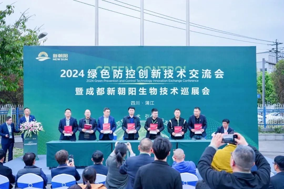 2024年3月24日,由全國農(nóng)技推廣服務(wù)中心指導(dǎo),中國農(nóng)藥發(fā)展與應(yīng)用協(xié)會主辦,成都新朝陽作物科學(xué)股份有限公司(以下簡稱“新朝陽”)承辦的2024綠色防控創(chuàng)新技術(shù)交流會在成都蒲江隆重召開。與會者包括農(nóng)業(yè)農(nóng)村部各位領(lǐng)導(dǎo)、來自全國十九個省農(nóng)業(yè)廳的領(lǐng)導(dǎo)、來自全國的新朝陽合作伙伴,共同探討綠色農(nóng)業(yè)發(fā)展的前沿技術(shù)和未來趨勢。會議伊始,四川省農(nóng)業(yè)農(nóng)村廳二級巡視員劉代銀、蒲江縣人民政府副縣長彭東、中國工程院院士及貴州大學(xué)校長宋寶安、全國農(nóng)技推廣服務(wù)中心主任魏啟文、農(nóng)業(yè)農(nóng)村部農(nóng)藥檢定所所長黃修柱,分別發(fā)表了大會致辭。他們在致辭中,不僅表達了對本次會議的深切關(guān)注與大力支持,更彰顯了對綠色農(nóng)業(yè)發(fā)展和綠色防控科技創(chuàng)新的堅定信念與決心。