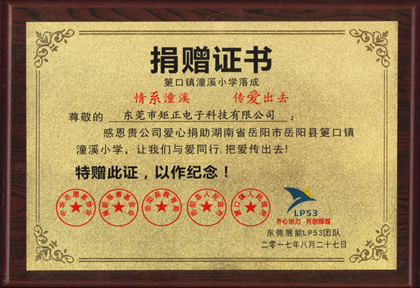 矩正愛心捐贈證書