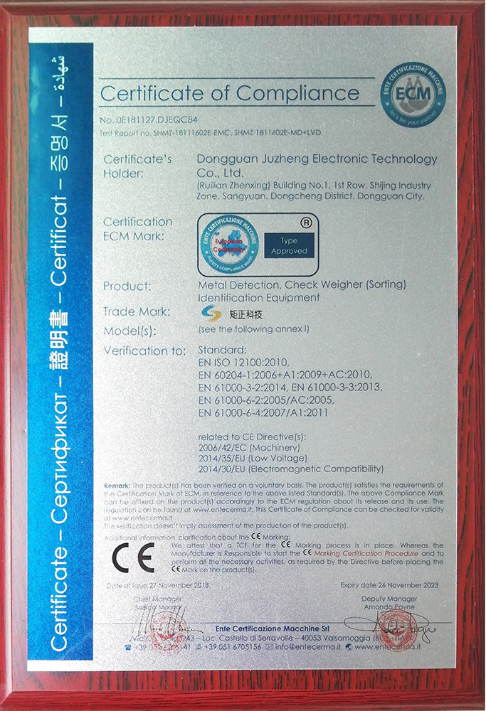 金屬機CE證書2